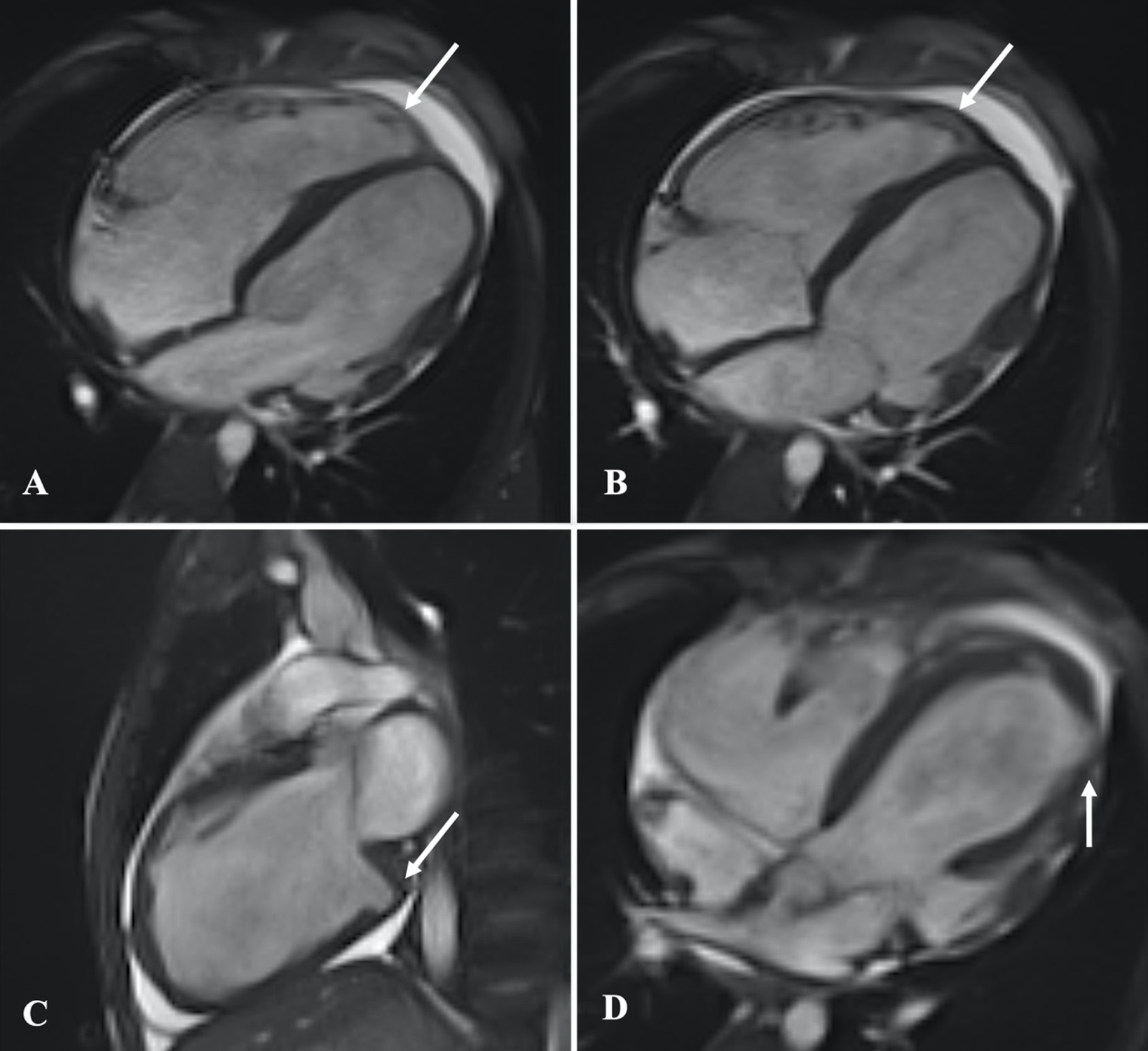 A 13-year-old male patient was admitted with complaints of chest pain and shortness of breath with exertion for 2 months. He was referred to our institution with a prediagnosis of ARVC and heart failure. Physical examination findings were as follows: Mild tachycardia (120-130 bpm), tachypnea (38/min), a 2-3/6 pansystolic murmur best heard at the left lower sternal border, jugular venous distension, a liver palpable 3 cm below the costal margin and mild ascites. Electrocardiogram showed; sinus tachycardia (110 bpm), a widened QRS (120 msec) and the corrected QT interval (QTc) of 480 msec (because of widened QRS) (Fig. 1). Echocardiography revealed significantly reduced biventricular function (left ventricle M-mode ejection fraction: 15%), enlarged right heart chambers with a RV diameter of 53.8 mm (z score: + 4.08) in apical 4 chamber view and severe tricuspid regurgitation (Fig. 2). Cardiac MRI showed marked dilation of the right ventricle (RV) with an indexed volume of 149 mL/m2 and hypokinesia in the free and inferior walls, as well as segmental wall thinning and focal late gadolinium enhancement (Fig. 3). The ejection fraction was 10% and 15% for the right and left ventricles, respectively. Heart failure treatment was administered immediately and a 24-hour-rhythm Holter was planned. On the second day of hospitalization, the patient had a sudden cardiac arrest and during cardiopulmonary resuscitation, it was recognized that the patient had VT exhibiting LBBB morphology with an intermittent transition to ventricular fibrillation (VF). Multiple antiarrhythmics including lidocaine, amiodarone, and magnesium were administered and the arrhythmia was converted to sinus rhythm after 5 cardioversions and 2 defibrillations. The patient was transferred to the pediatric intensive care unit (PICU). During follow-up in the PICU, the patient had episodes of LBBB morphology VT with intermittent transition to VF despite amiodarone and lidocaine infusion and was re-arrested. During cardiopulmonary resuscitation (CPR), venoarterial extracorporeal membrane oxygenation (ECMO) was initiated in 35 minutes. As drug-resistant VT storm continued during ECMO support, a single staged endocardial and epicardial approach for ablation was planned along with the assistance of cardiothoracic surgery. Even though the epicardial scar was much larger than the endocardial scar, a clinical VT isthmus was present at the endocardial site where ablation terminated the VT quickly (Fig. 4). An implantable cardiac defibrillator was implanted for secondary prevention, amiodarone was administered, and the patient was decannulated on the 4th day. The patient was discharged without any sequelae meanwhile autosomal dominant mutation that is linked to ARVC was detected in DSC2 gene at 18q12.1. Three months later the patient was rehospitalized for decompensated heart failure (NYHA class III-IV). Following this, his clinical status deteriorated due to multidrug refractory and inotrope-dependent heart failure. His kidney functions worsened, he became symptomatic even at rest, and developed massive hepatomegaly and ascites which required multiple paracentesis but never experienced sustained and hemodynamically significant arrhythmia. He could not be discharged and was on inotropes for 12 months till he underwent a successful heart transplantation. Pathological analysis of the explanted heart revealed: diffuse degenerative changes characterized by nuclear hyperchromasia, centralization and pleomorphism, areas of mucinous degeneration and oedema under the endocardium, mucinous degeneration in the valves, fibrosis between muscle fibers, congestion and fibrin accumulation sites in the pericardium and also a quite thin right ventricle wall. The patient has been followed up for 9 months and shown no symptoms post-transplantation.