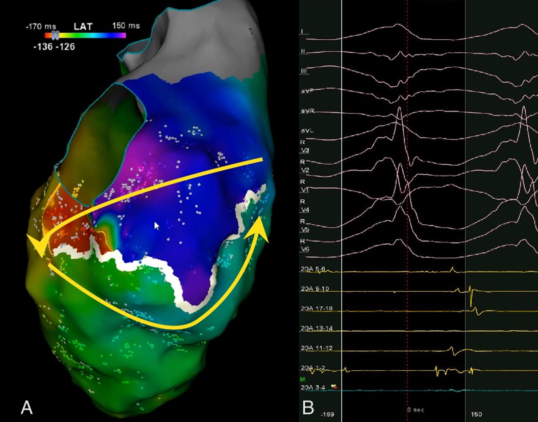 Arrhythmogenic right ventricular cardiomyopathy (ARVC) is an inherited disorder characterized by progressive fibro-fatty replacement of the myocardium, and ventricular tachycardia (VT) with left bundle branch block (LBBB) morphology. It usually presents with symptomatic arrhythmias or sudden death.1