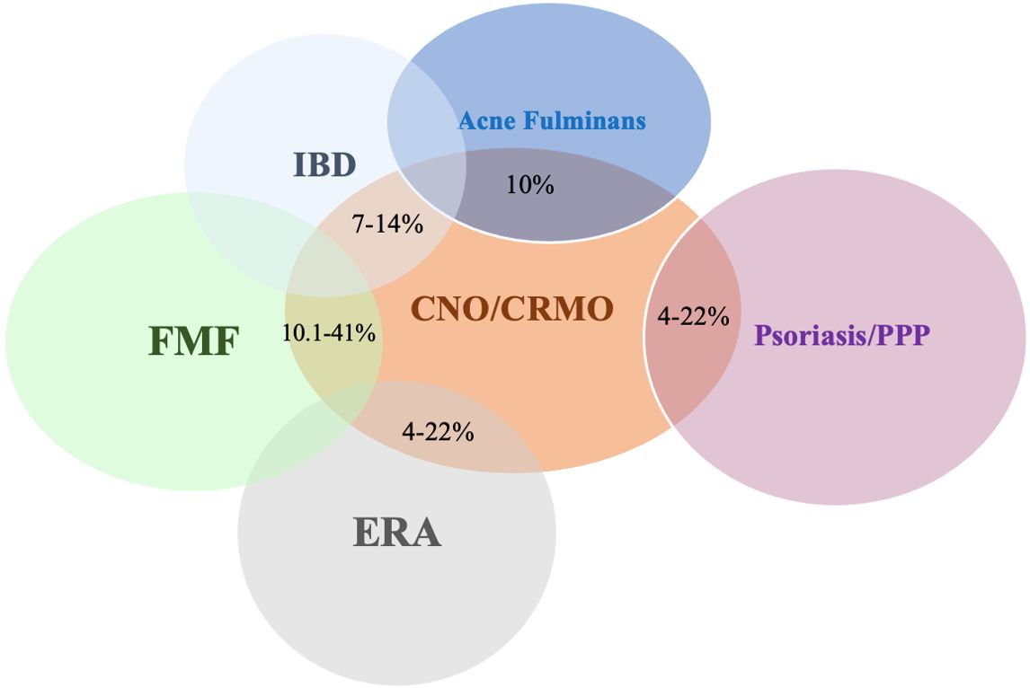 &CNO is associated with psoriasis, PPP, acne, IBD, spondyloarthropathy/ERA and FMF